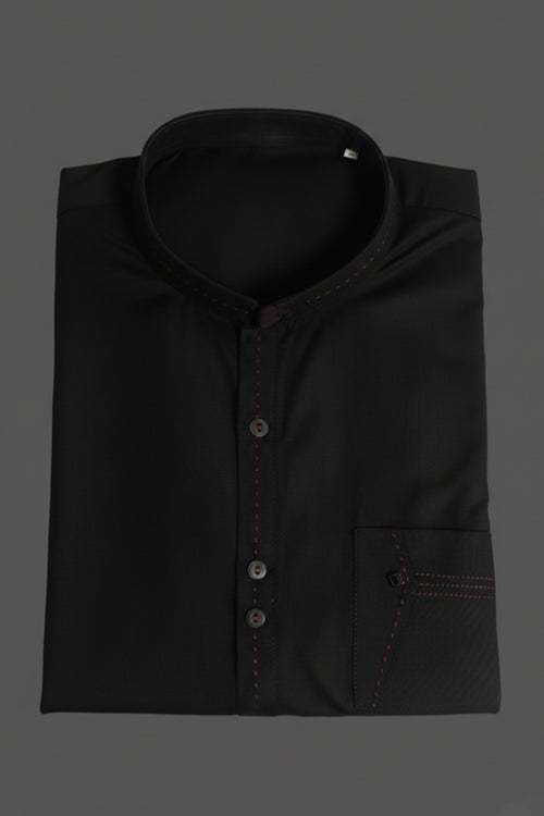 Boys Black Embroidered Kurta – Traditional Eid & Party Wear