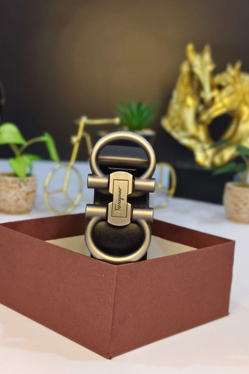 Premium Pebbled Grain Leather Belt – Chocolate Brown | Gunmetal Buckle -